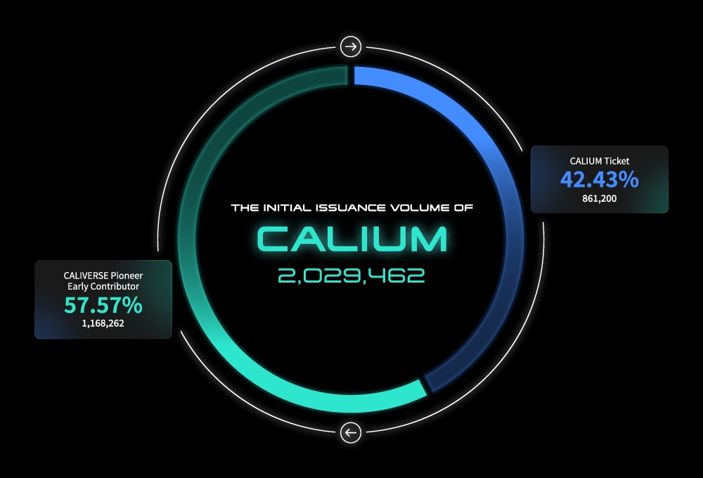 The Initial Issuance Volume of CALIUM has been allocated to early Eco-System participants prior to the public launch of the CALIVERSE metaverse to establish the foundation of the CALIUM Eco-System in New Earth.
