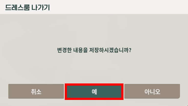 두번째 방법입니다. [ESC]를 클릭, 드레스룸을 클릭합니다.