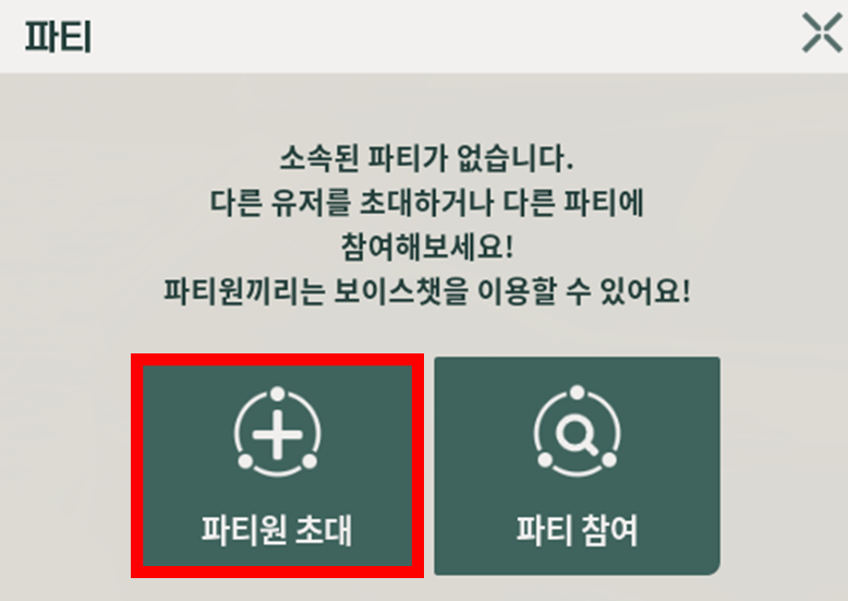 TIP: 파티는 최소 2명 ~ 최대 5명까지 가능합니다.
