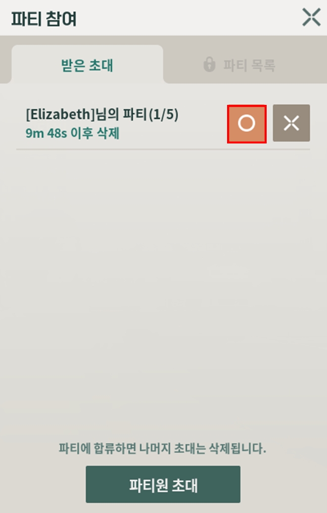 2-2. 받은 초대 확인 후, “O” 버튼을 클릭해 주세요.