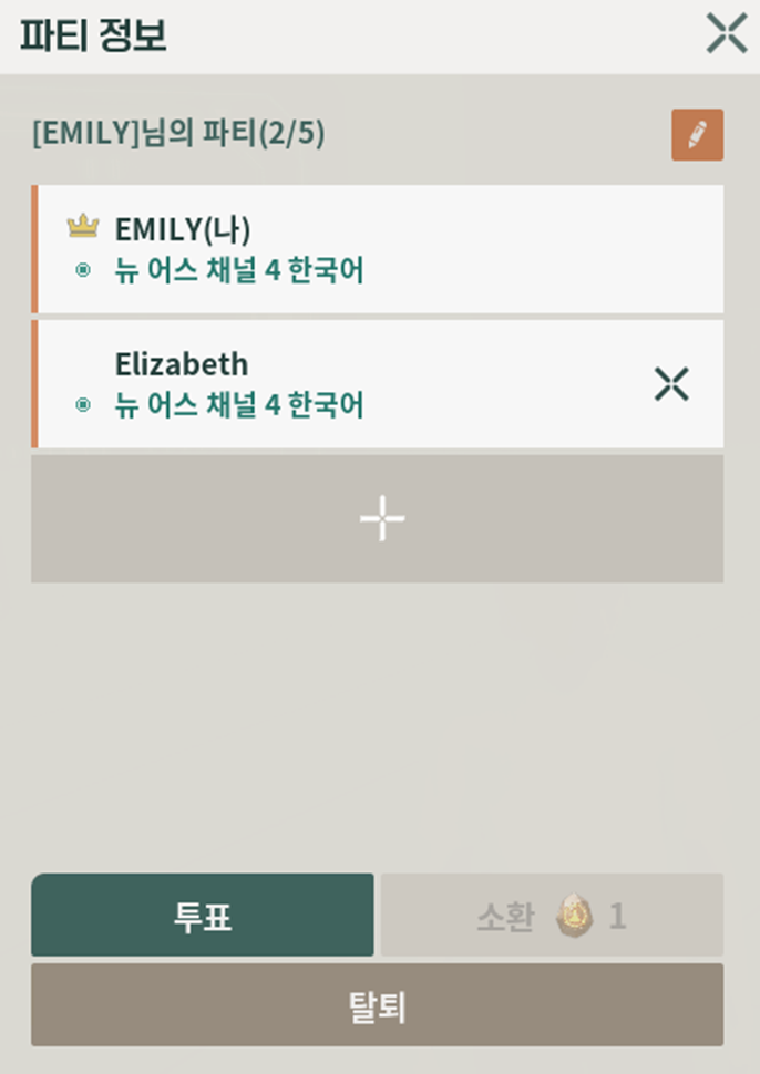 파티원끼리 투표를 하고 싶어요.