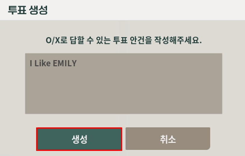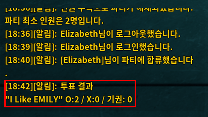 TIP: 투표 결과는 좌측 하단 메시지창을 통해 확인할 수 있습니다.