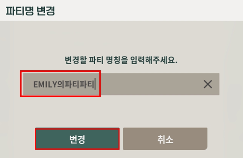 6-2. 변경할 파티 명칭을 입력 후, [변경]버튼을 클릭해 주세요.