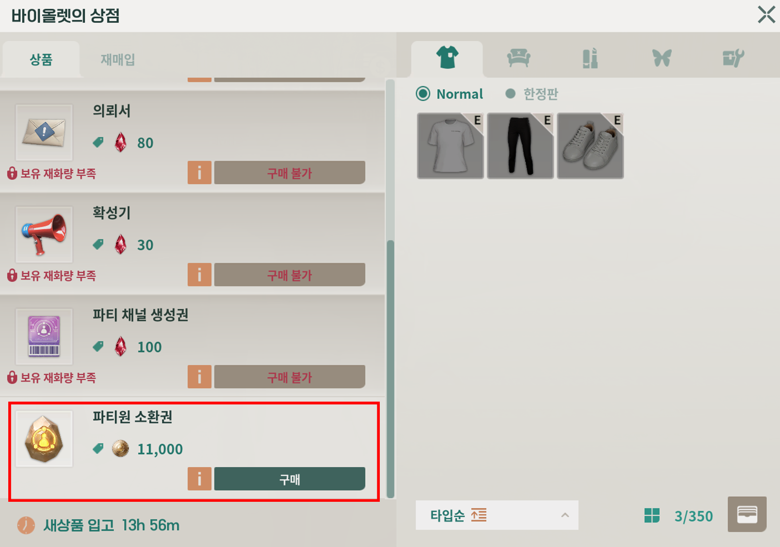 파티원 소환권은 소모품 상인 바이올렛을 통해 구매할 수 있습니다.