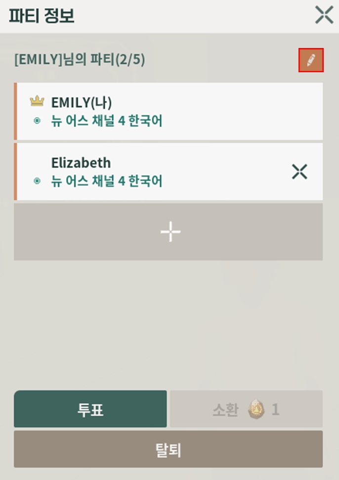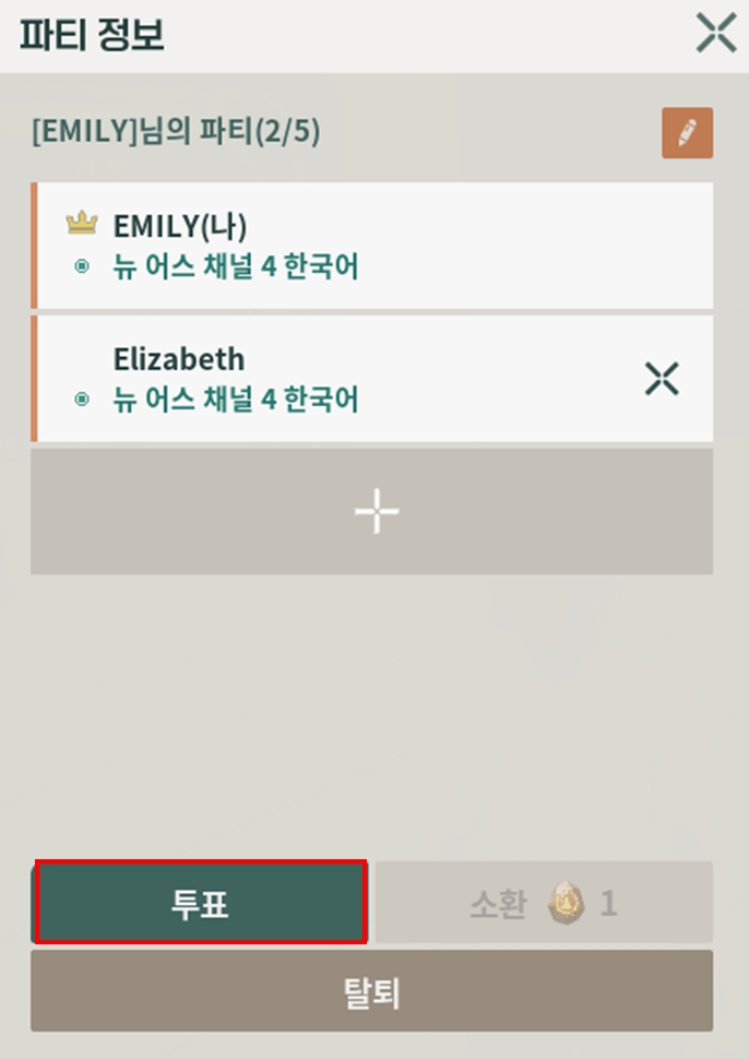 4-1. 파티 정보에서 [투표]버튼을 클릭해 주세요.