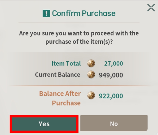 In the 'Confirm Purchase' window, check the payment amount, and click [Yes].