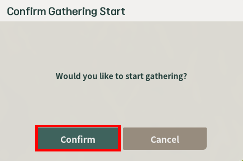 To stop gathering, press and hold the left mouse button to select [Quit Gathering], then click [Confirm] in the stop gathering popup.