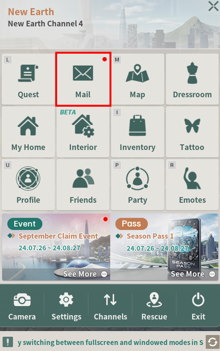Completed items can be checked by pressing [ESC] and accessing the [Mail] feature.