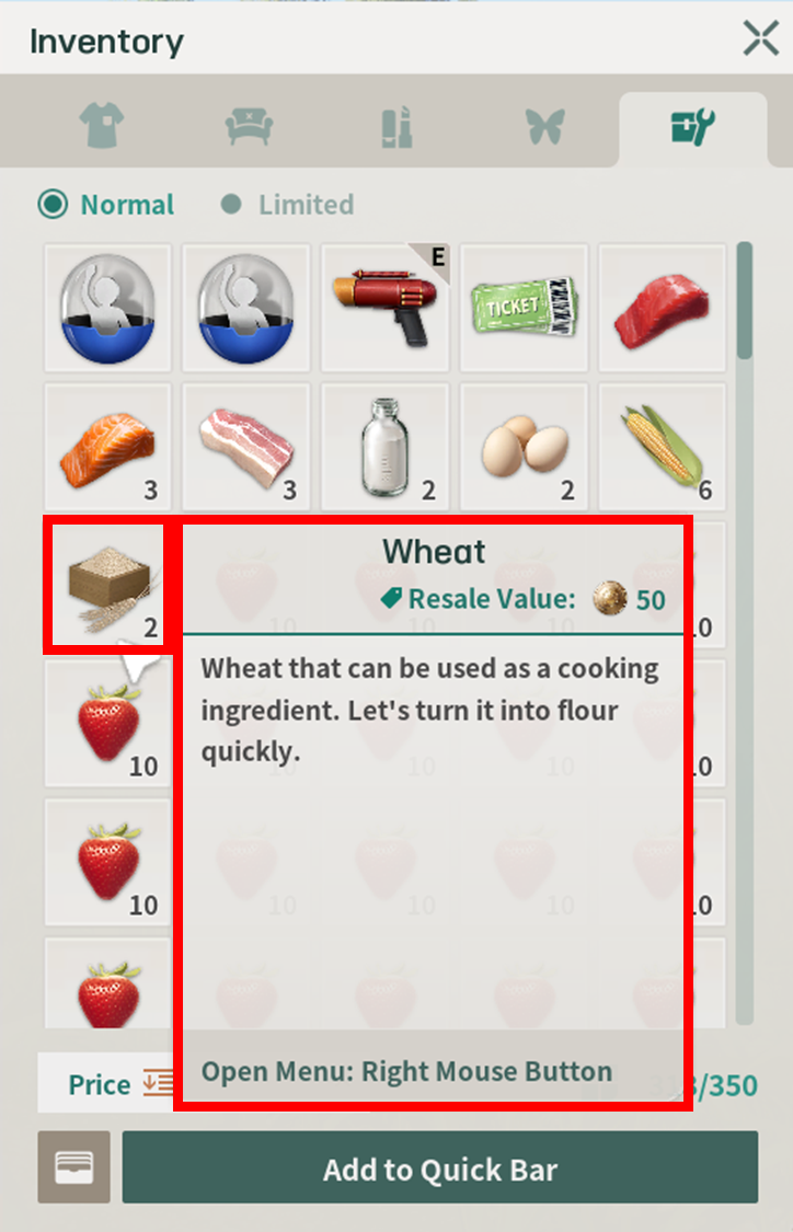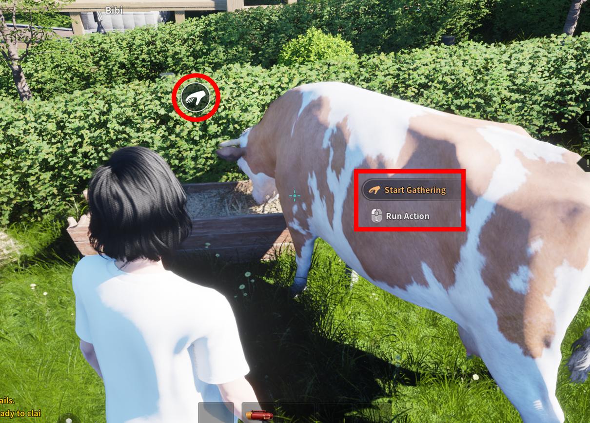 When you approach the crops or livestock you wish to collect, the gathering icon will appear. Hold the left mouse button and press the [Start Gathering] button to begin.