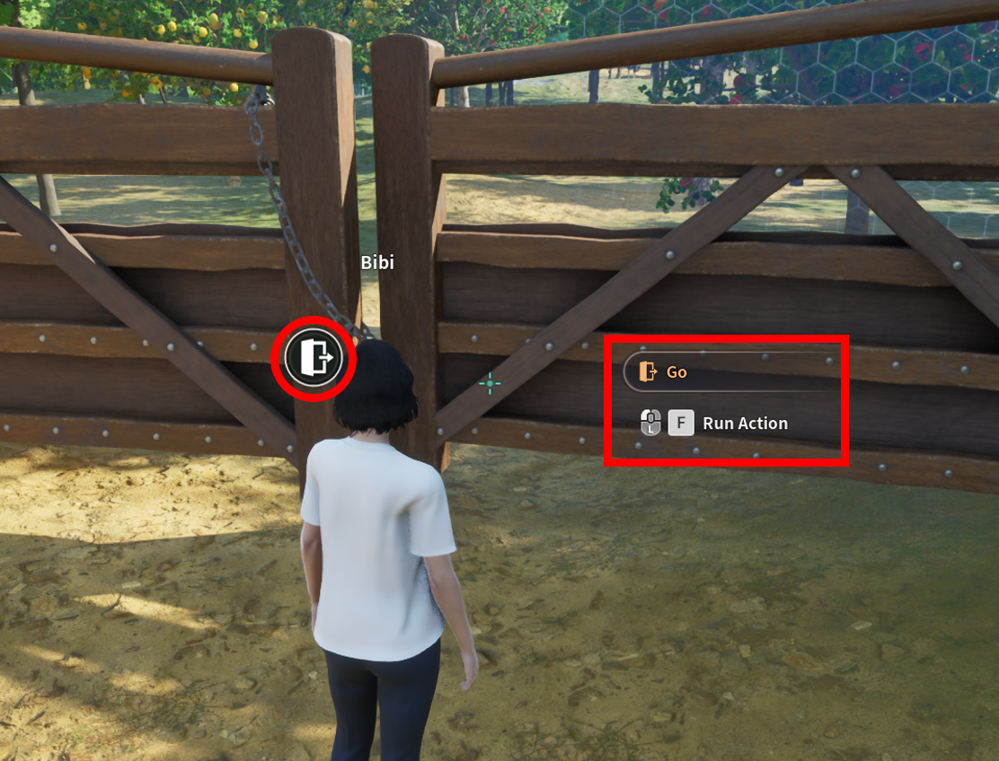 Approach the farm entrance, click the entry icon, then press [Enter] to enter the farm.