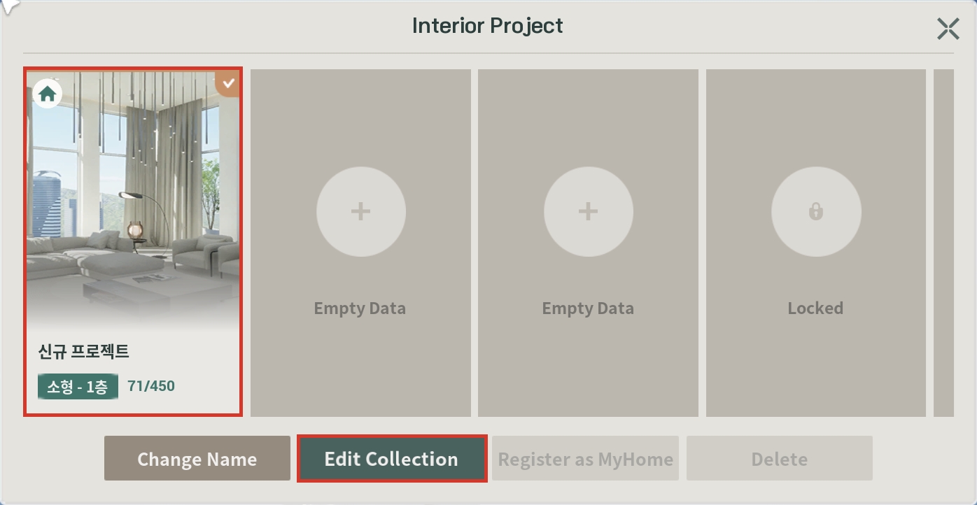 Select the project you want to decorate from your available Interior Project, then press the [Edit Collection] button.