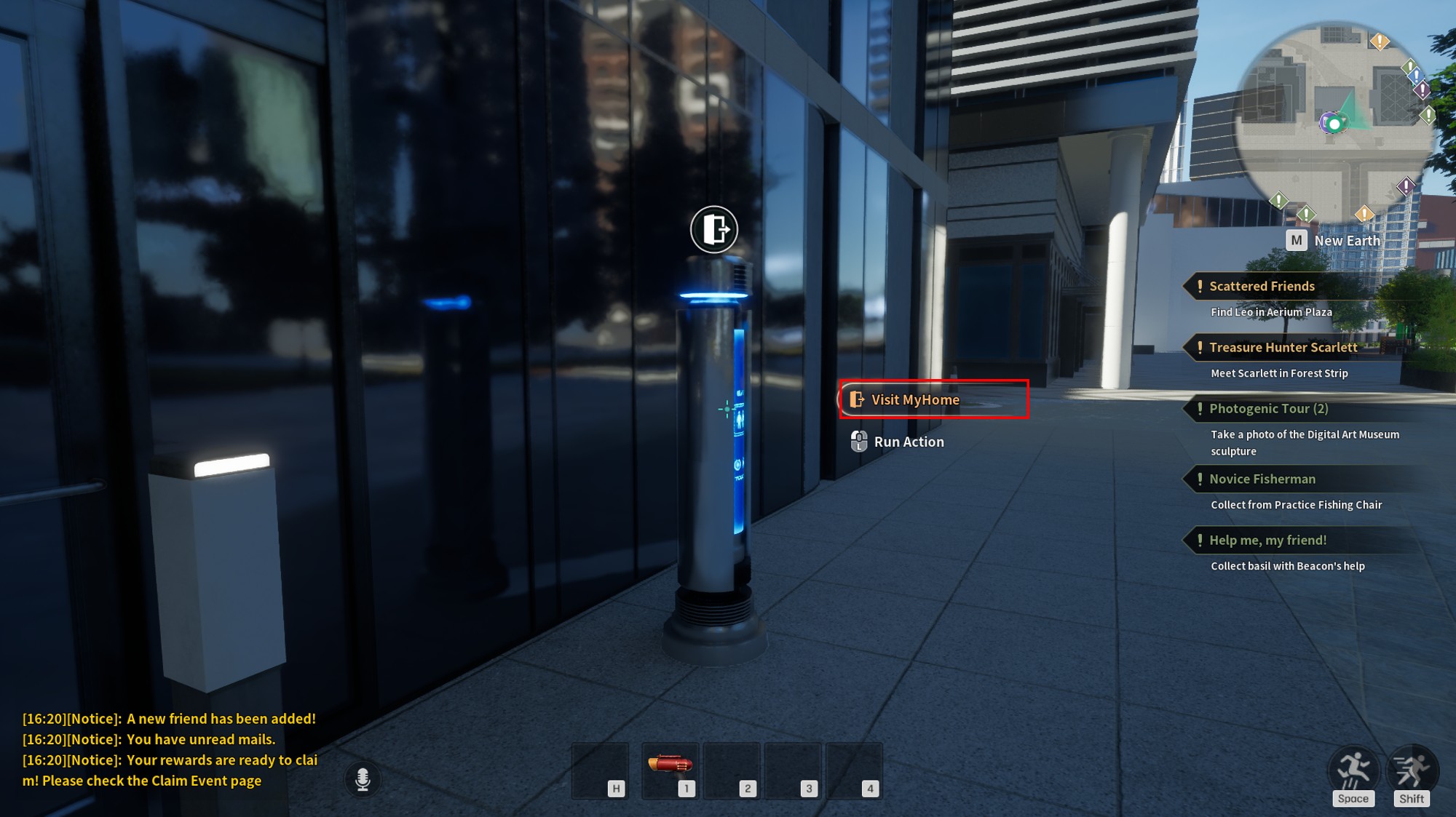 2-3. Press and hold the left mouse button, then select the [Visit MyHome] function.