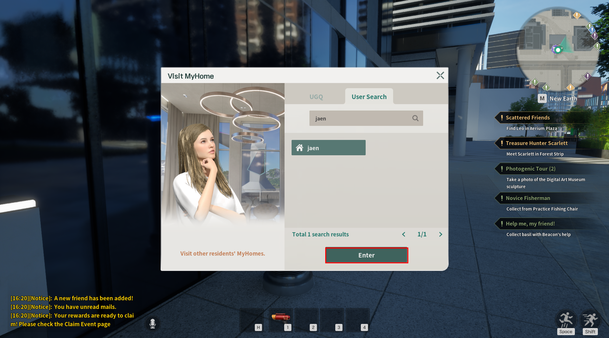 Visiting My Room by Searching for the Nickname 2-1. Remember the nickname of the user you want to visit. 2-2. Click the shortcut key "M" and move to [The Metro Loft].