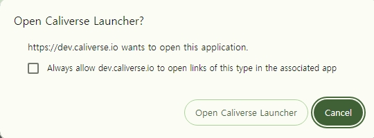 Click the [Open CALIVERSE Launcher] popup in your browser.