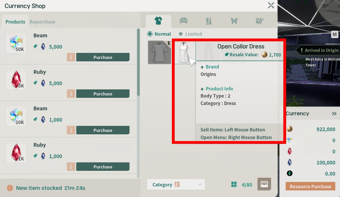 - ショップのNPCを訪問した後、「ショップ」ボタンをクリックしてください。