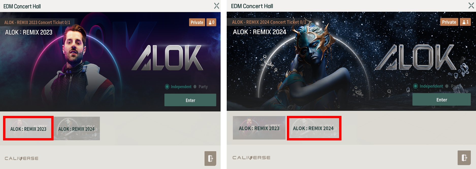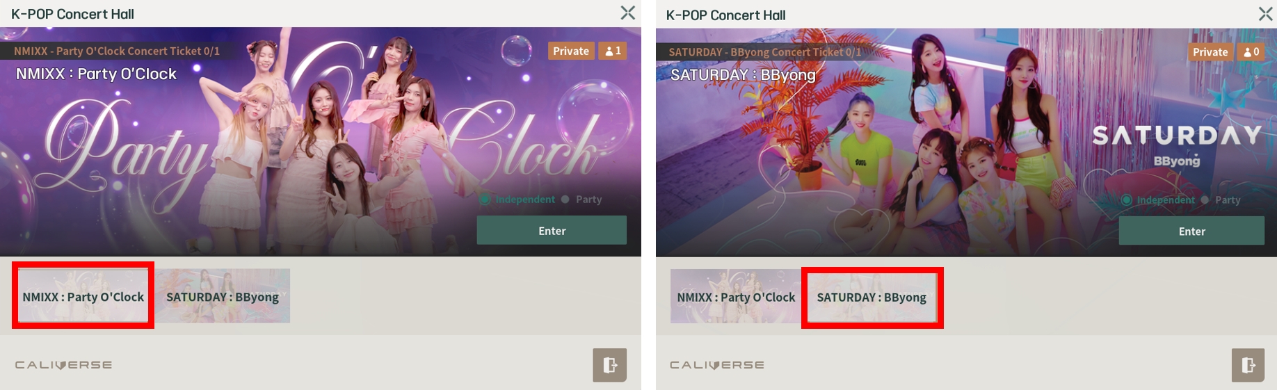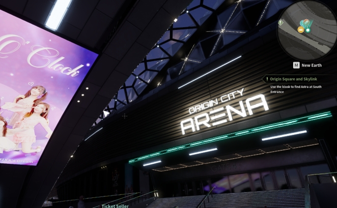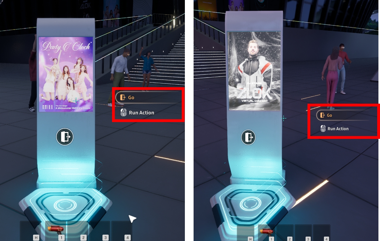コンサート会場の入口に行けるキオスクに移動します。 キーボードの[F]キーを使うか、マウスで左クリックしてコンサートの案内を確認します。