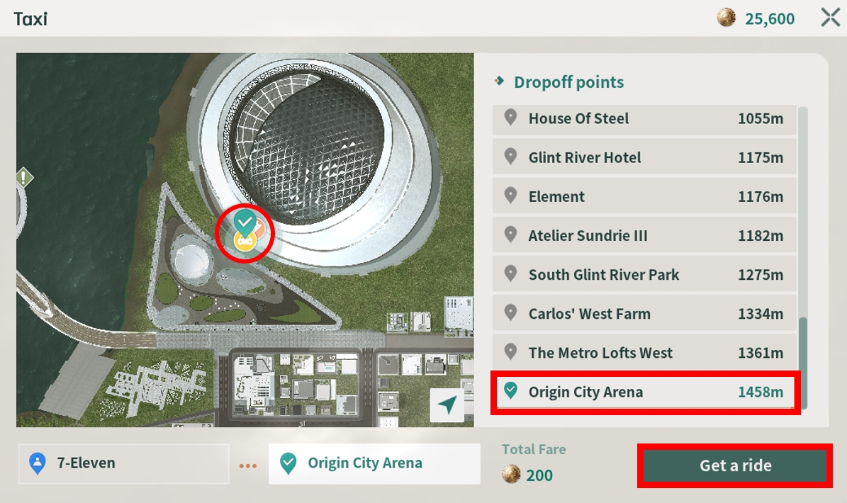 「オリジンシティアリーナ」停留所をクリックし、「移動する」オプションを選びます。