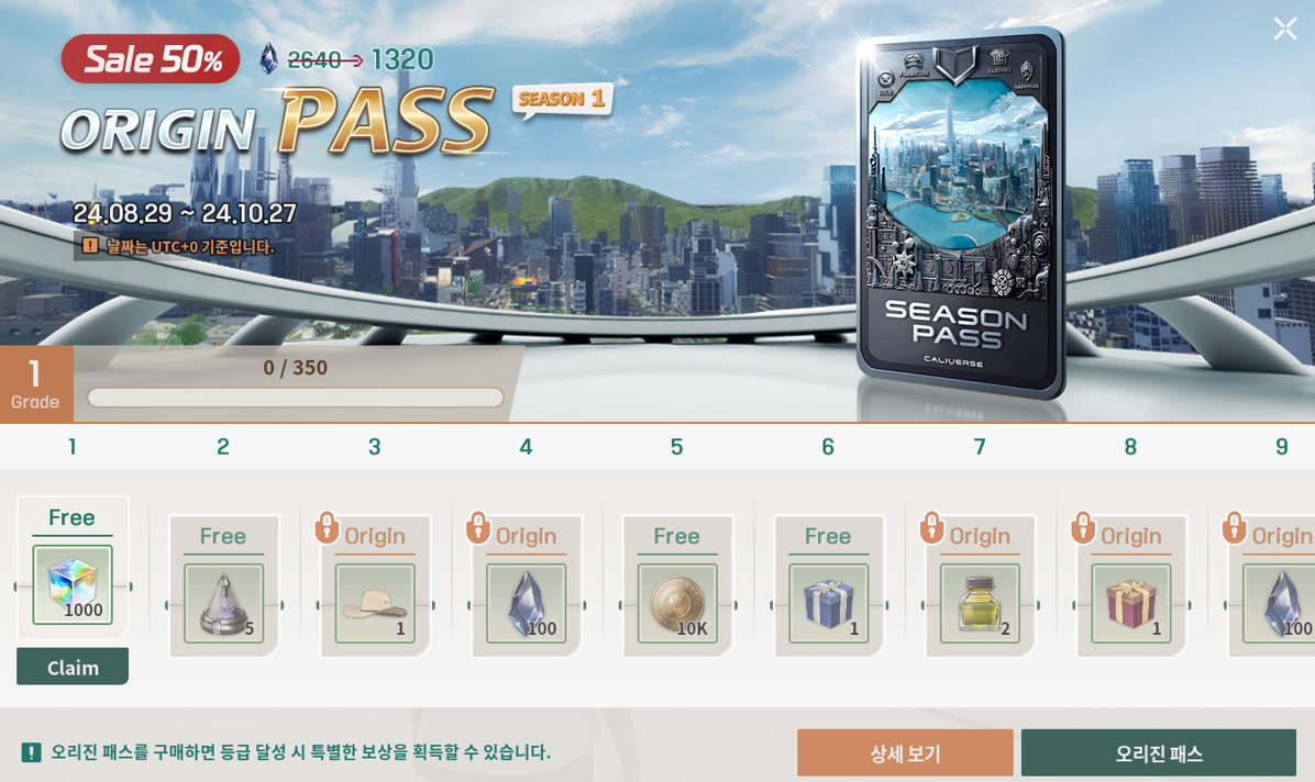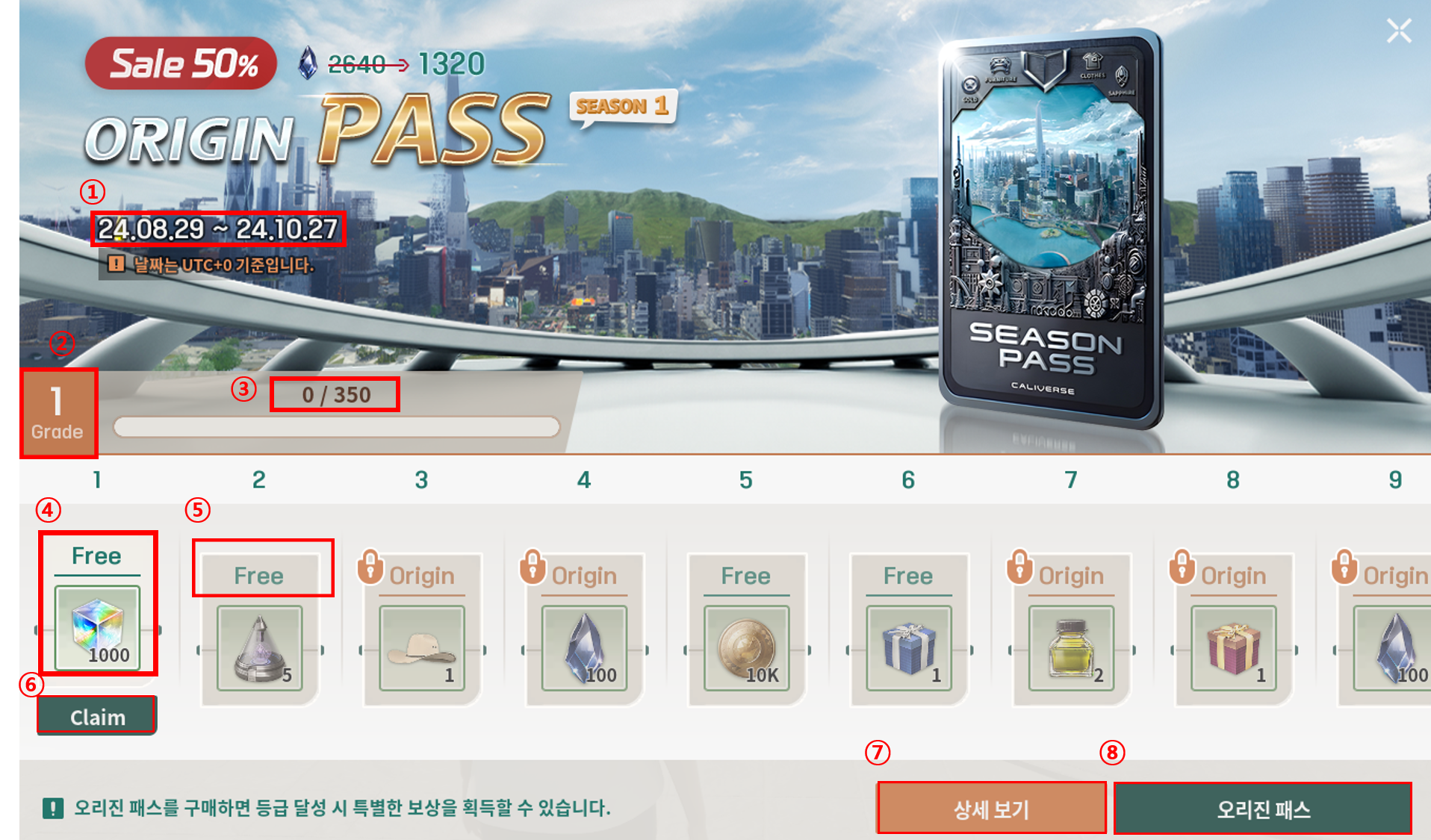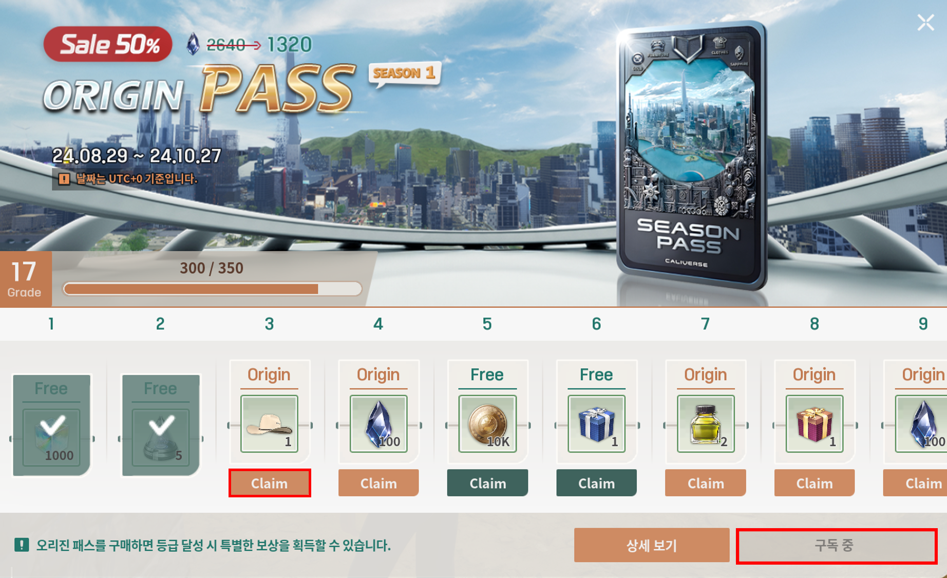 중요! 시즌패스는 시즌제로 운영되며, 정해진 기간이 끝나면 보상을 획득할 수 없으니 기한 내에 꼭 Claim진행하여 주시기 바랍니다.
