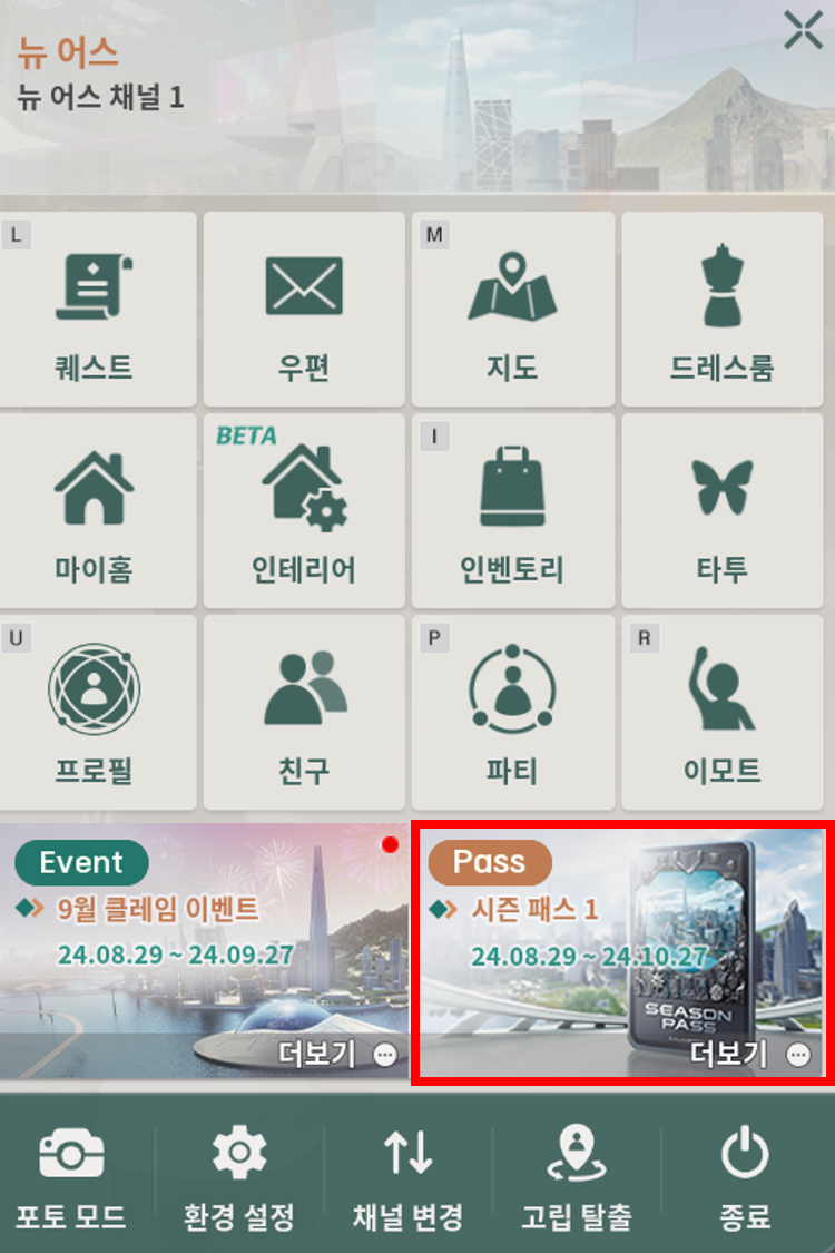 2-1. [ESC]버튼 클릭 후 [시즌 패스 1]을 클릭해 주세요.